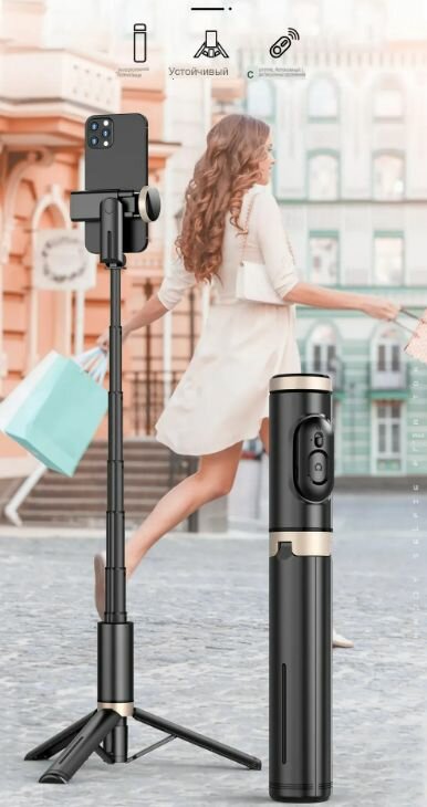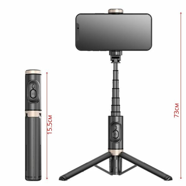 К-07 Фото-штатив, селфи-палка, складная, с кнопкой пультом, черная