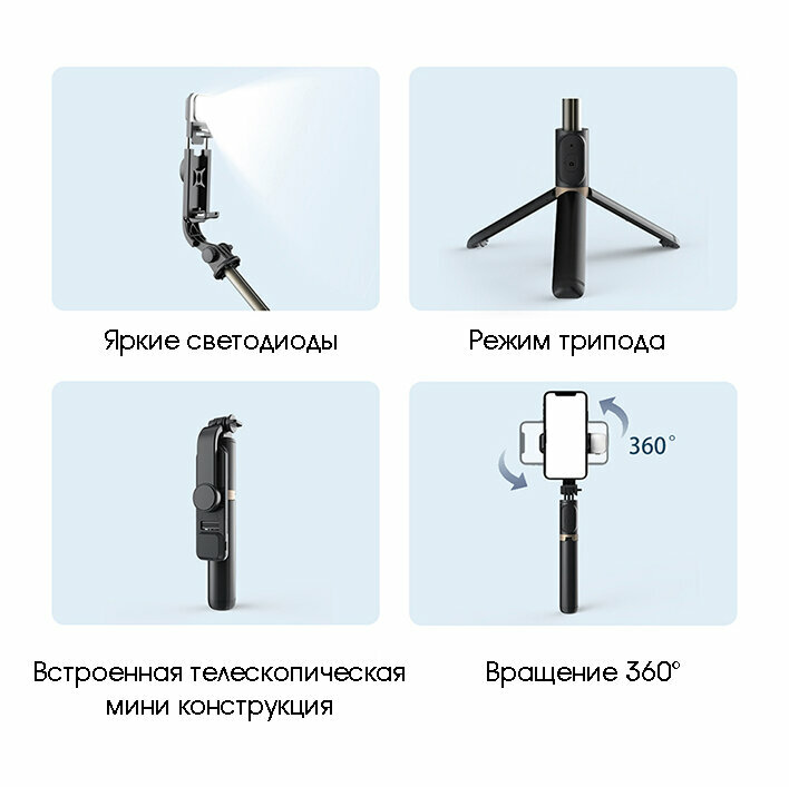 Монопод трипод, селфи палка для смартфона, штатив для телефона, с пультом Bluetooth (194-1010мм)
