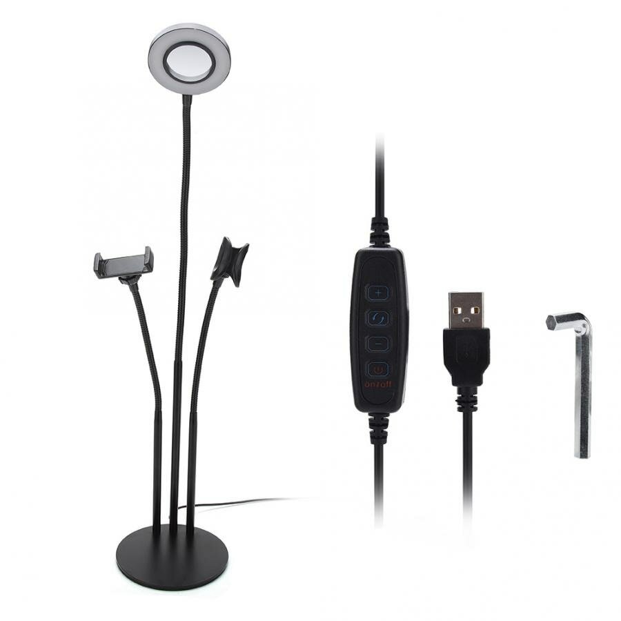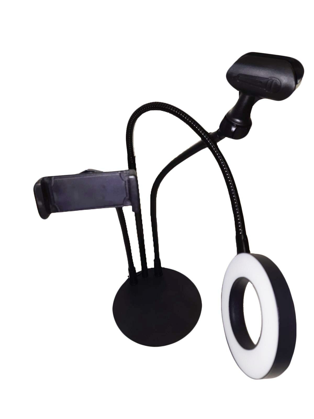 Отзывы на Штатив-держатель смартфона и микрофона с кольцевой LED лампой Selfie 3 в 1, черный