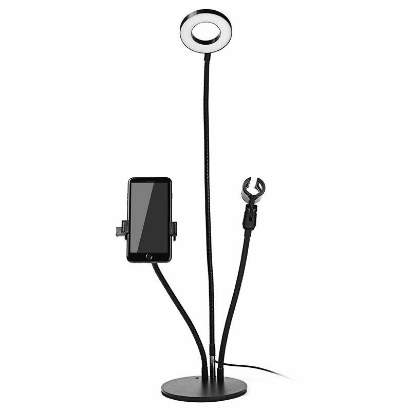 10 цен на Штатив-держатель смартфона и микрофона с кольцевой LED лампой Selfie 3 в 1, черный