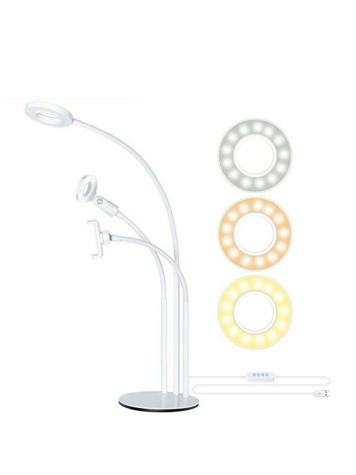 Отзывы на Штатив-держатель смартфона и микрофона с кольцевой LED лампой Selfie 3 в 1, белый
