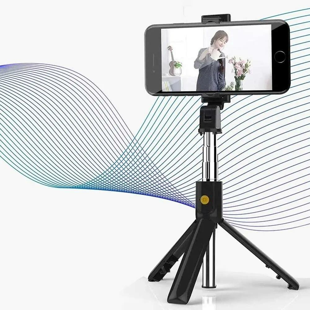 К-07 Фото-штатив, селфи-палка, складная, с кнопкой пультом, черная