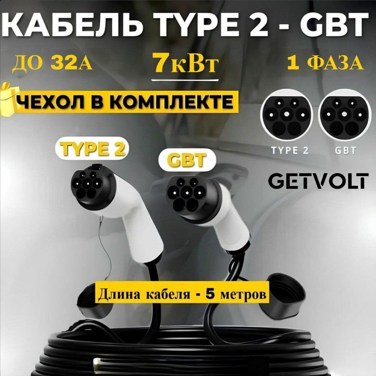 10 цен на Зарядный кабель для электромобиля Type2-GBT 5м 7кВт