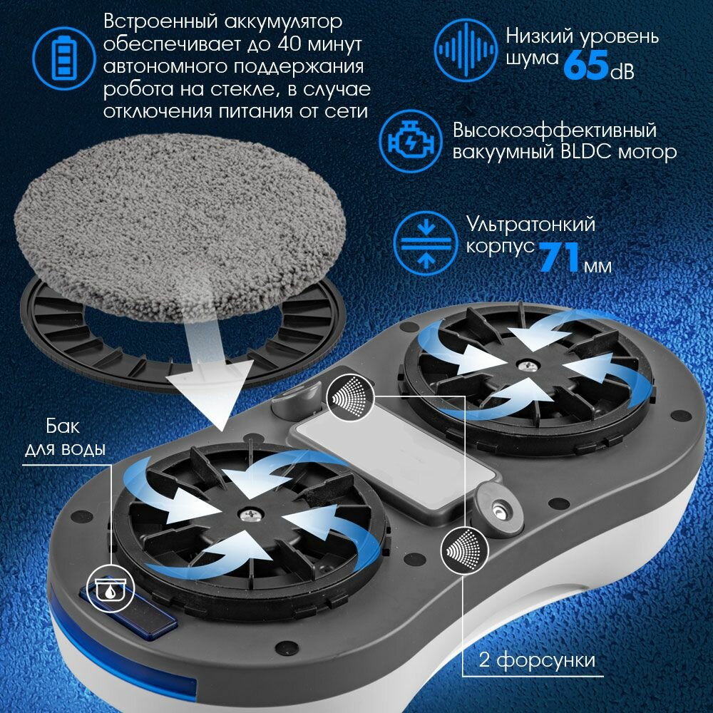 Робот-мойщик окон, с распылителем, страховочный шнур 4 м, пульт ДУ, 90 Вт, 10 сменных тряпок