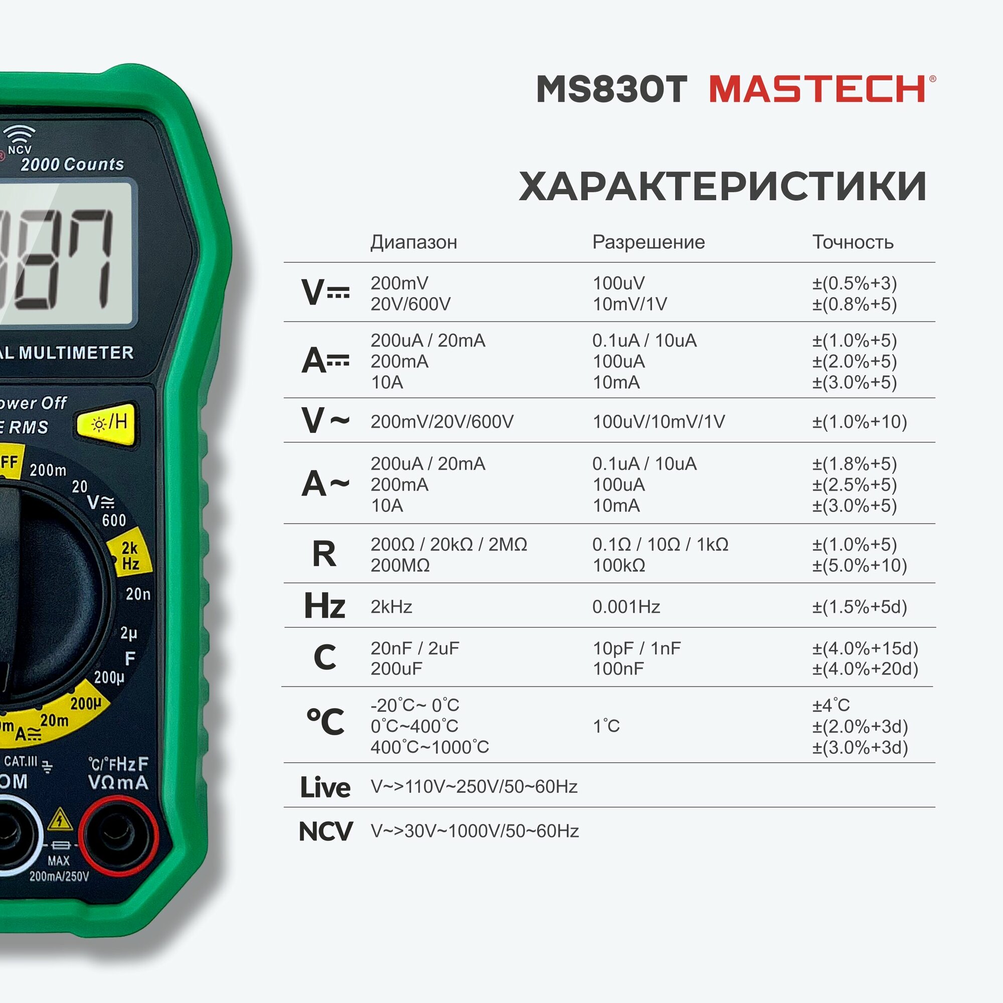 0 отзывов, средняя оценка 0. Чтобы купить «Цифровой мультиметр Mastech MS830T» по лучшей цене мы сканируем авито, алиэкспресс, маркет, озон, савеловский, плеер, горбушку, беру, официальные сайты и находим минимальную. Администрация не несет ответсвенность актуальность цен на Цифровой мультиметр Mastech MS830T, более подробно узнавайте на сайте магазина.
