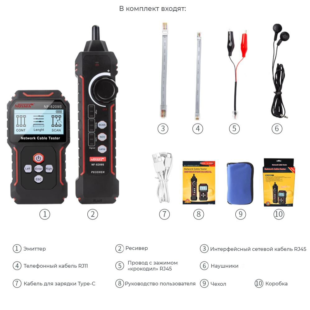 Кабельный тестер цифровой Noyafa NF-8209S информация: