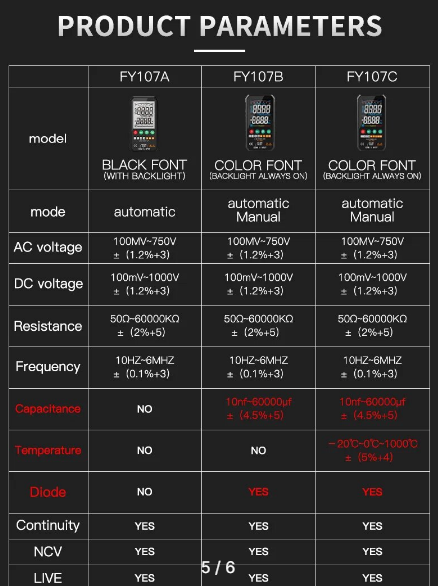 Ультратонкий цифровой мультиметр FY107A информация: