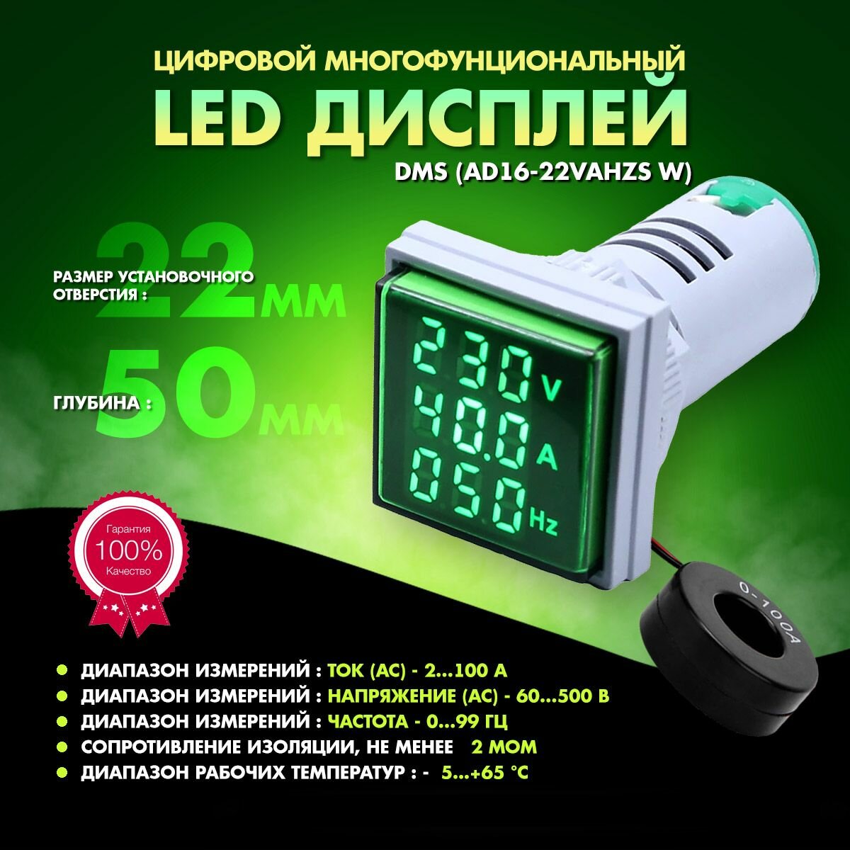 10 цен на Вольтметр амперметр DMS-303 Индикатор цифровой многофункциональный (AC) 2-100А, 60-500В зеленый