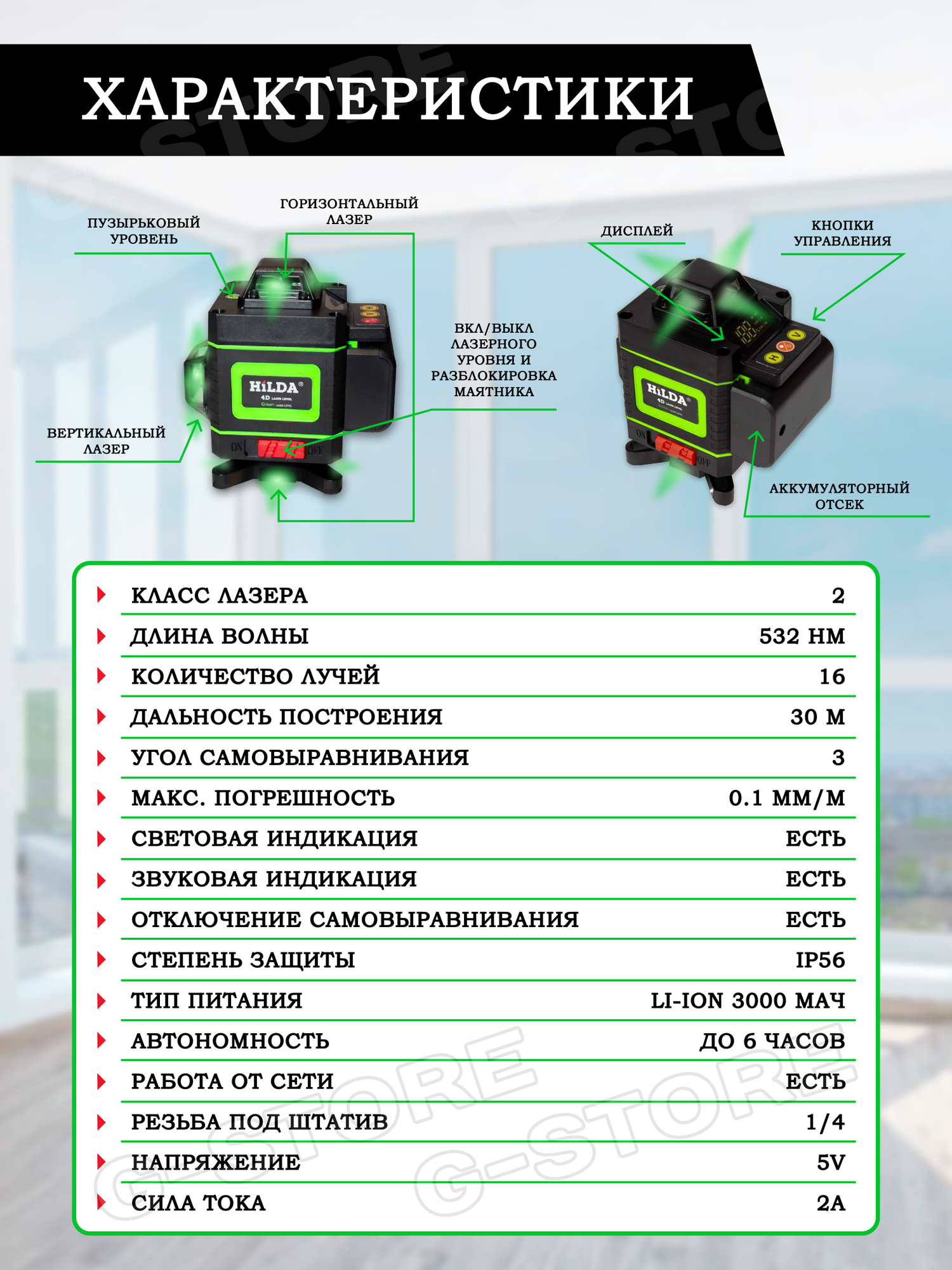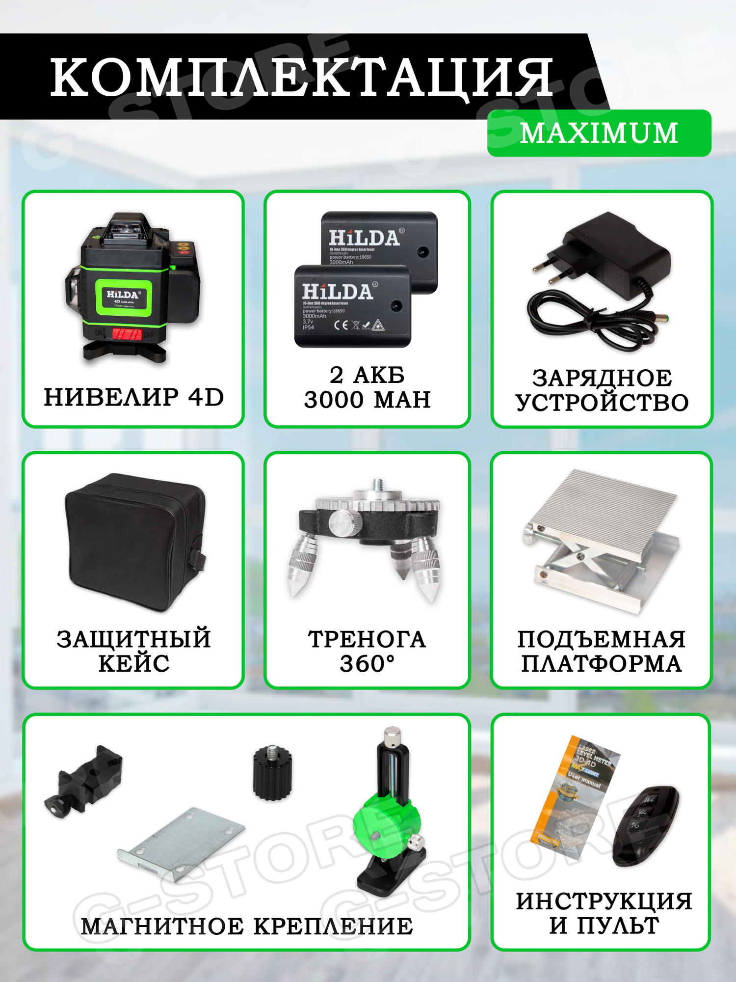 Лазерный уровень Нивелир HiLDA 4D /16 line 2 акб информация: