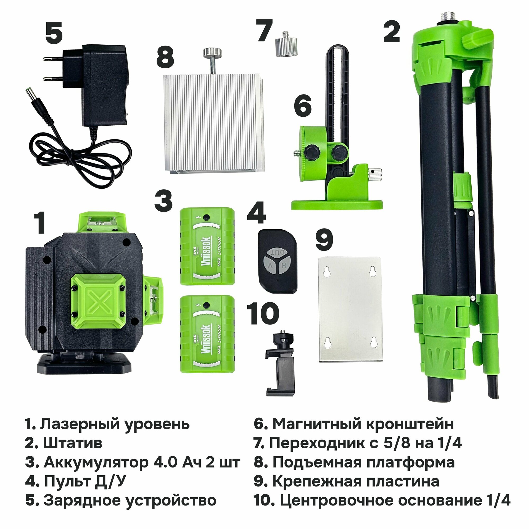 Лазерный уровень VNIISSOK Зеленый 16 лучей с пультом управления и штативом 1м. , Зеленый луч уровень 360 град