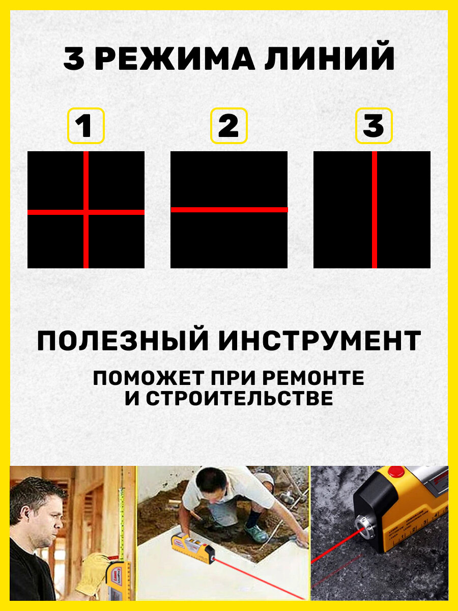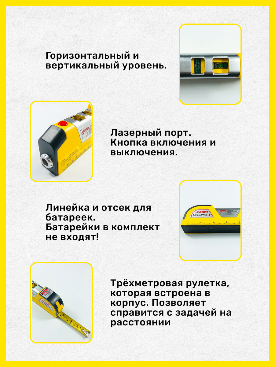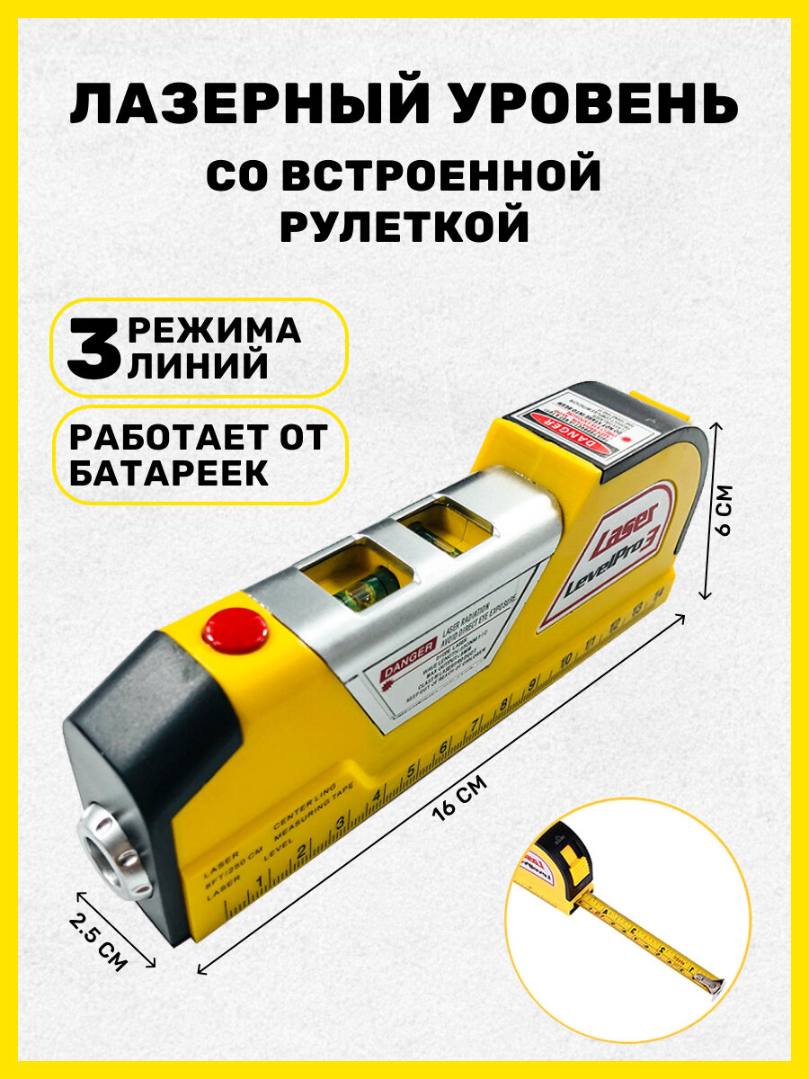 Лазерный уровень 4в1 с линейкой и рулеткой 2.5м, нивелир