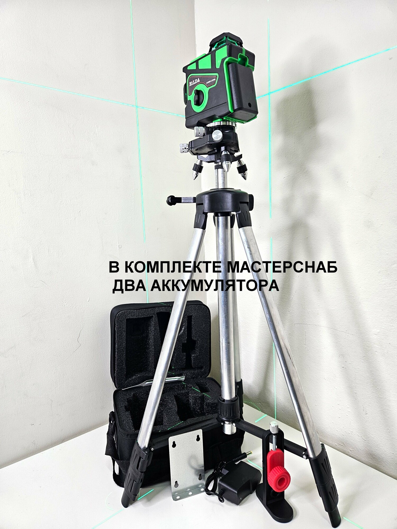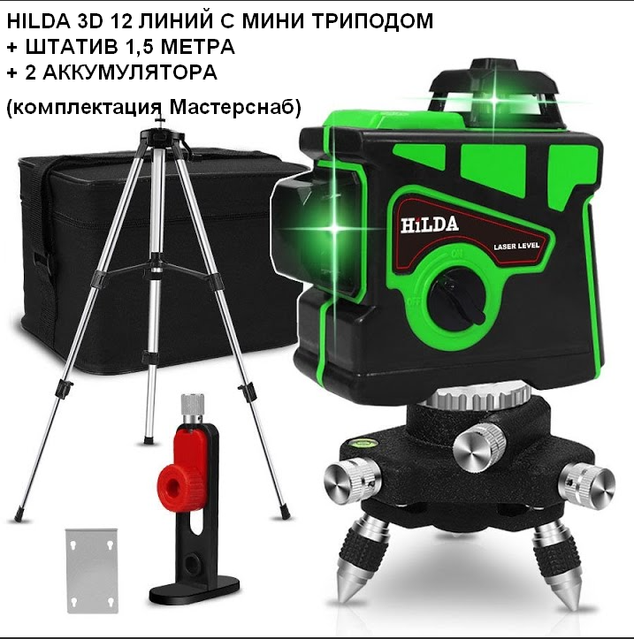 10 цен на Лазерный уровень HiLDA 3D 12 со штативом + 2 аккумулятора + мини трипод. Откалиброван.