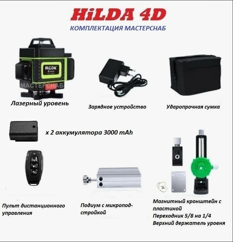 Лазерный нивелир 4D HiLDA 16 линий с двумя аккумуляторами 3000 mAh информация: