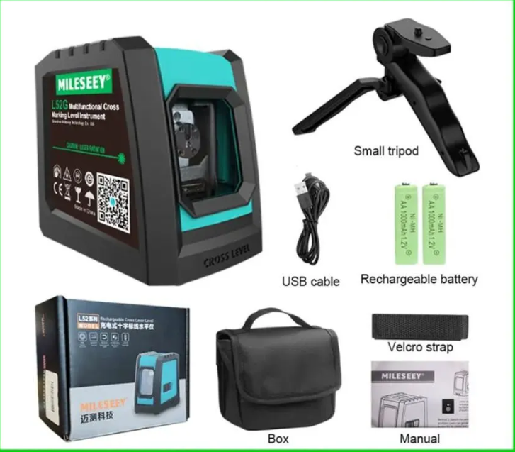 10 цен на Лазерный уровень Mileseey L52 с зеленым лучом (+тренога, +аккумуляторы +зарядка)