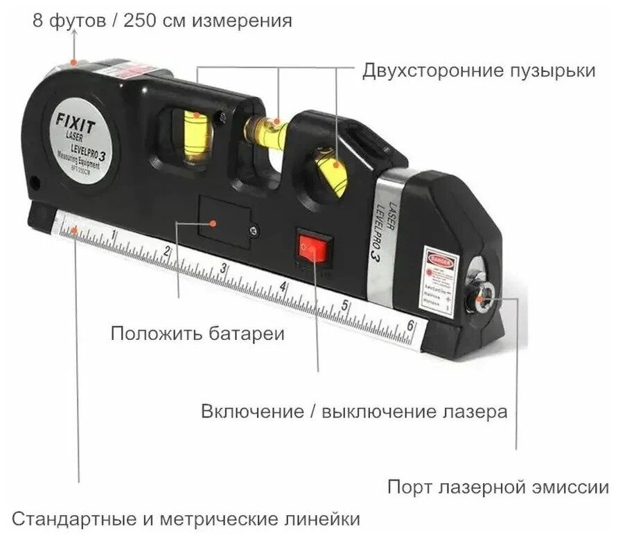 Отзывы на Лазерный уровень с линейкой и рулеткой Laser Level Pro 3/ электронный строительный уровень / нивелир