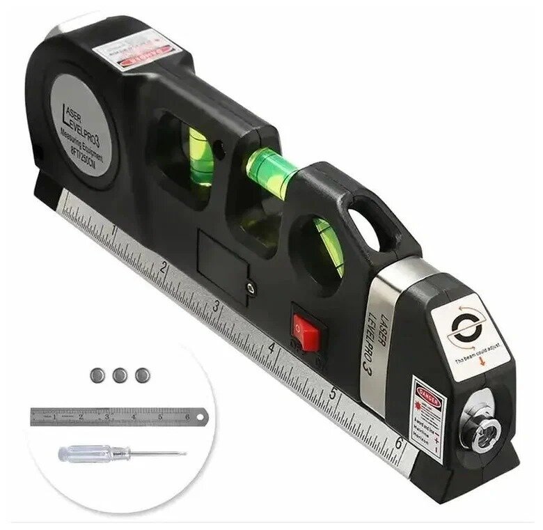 Лазерный уровень с линейкой и рулеткой Laser Level Pro 3/ электронный строительный уровень / нивелир информация: