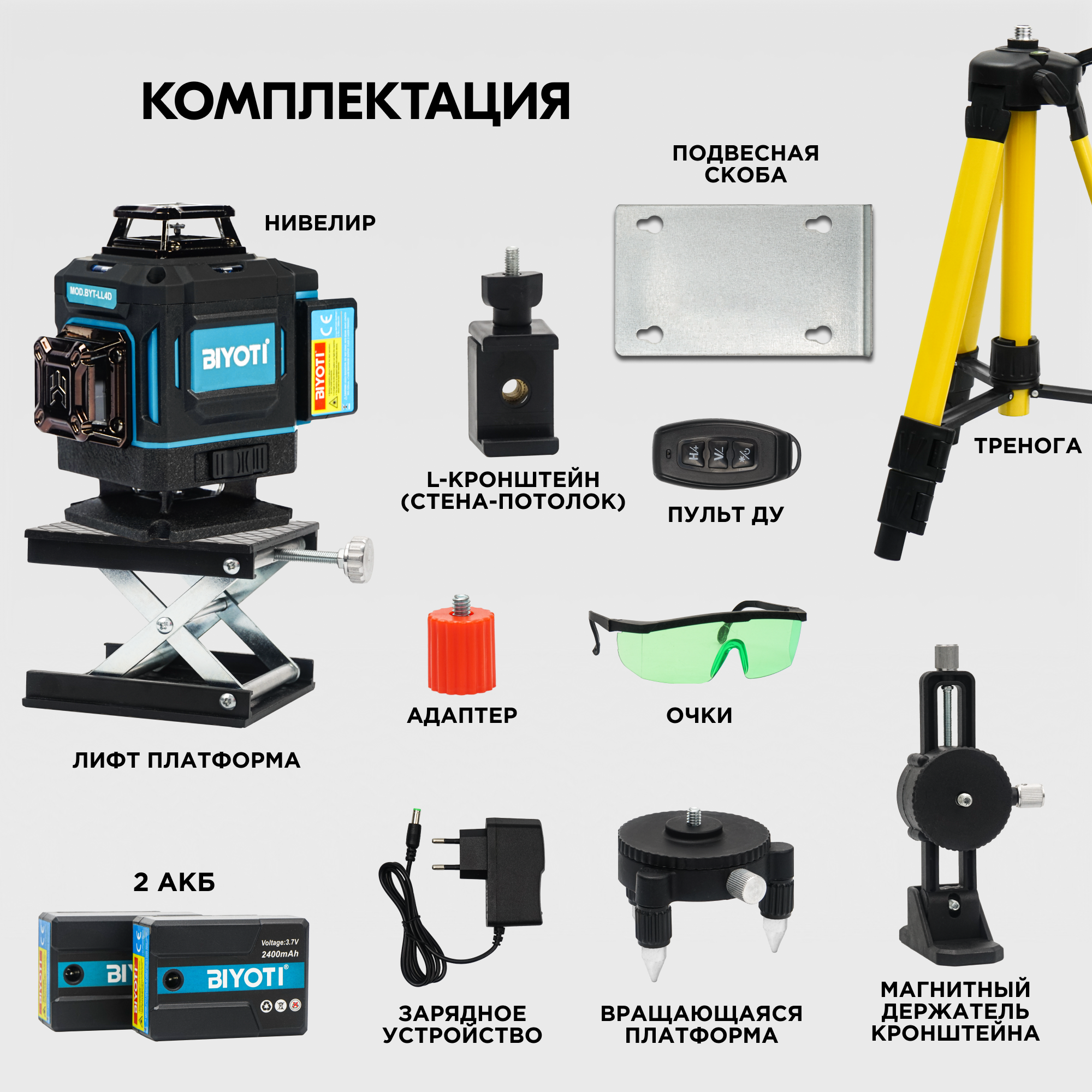 Лазерный уровень / нивелир 4D + тренога 95 см, BIYOTI информация: