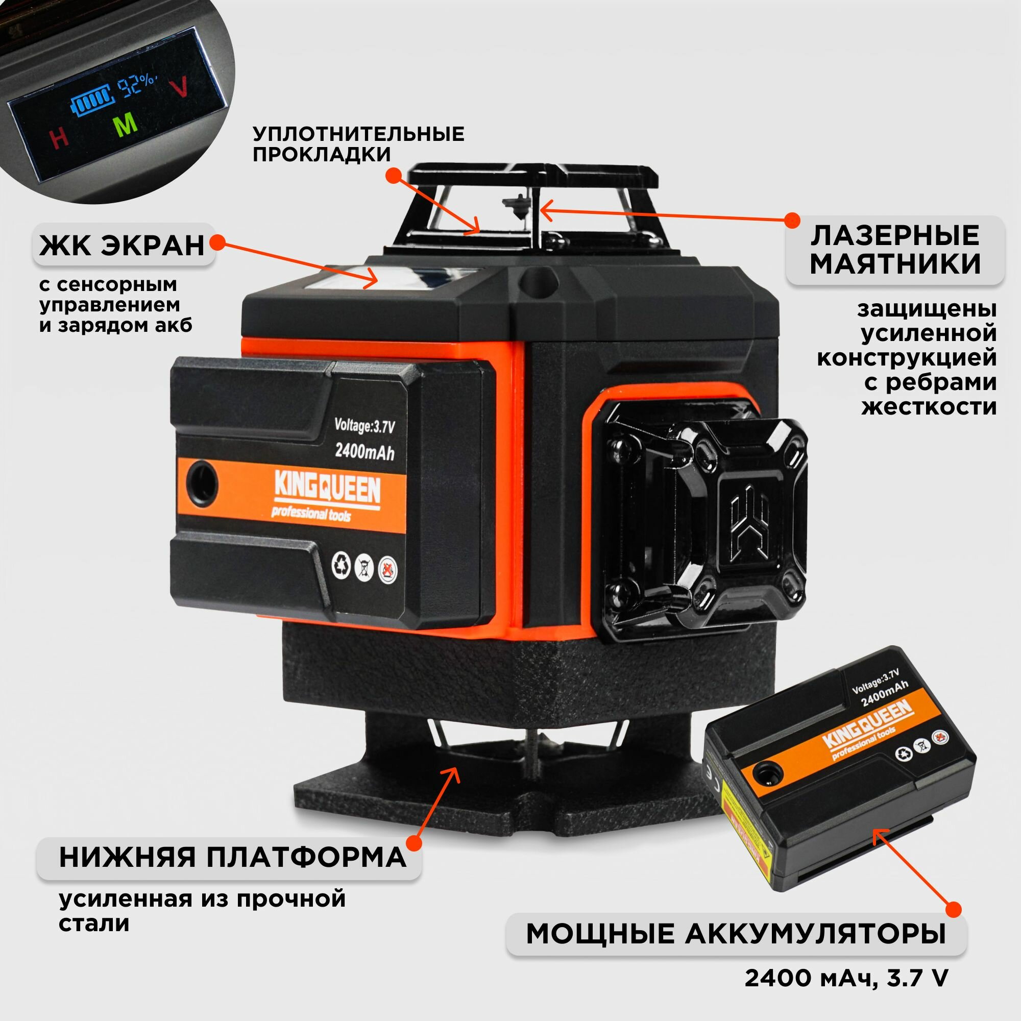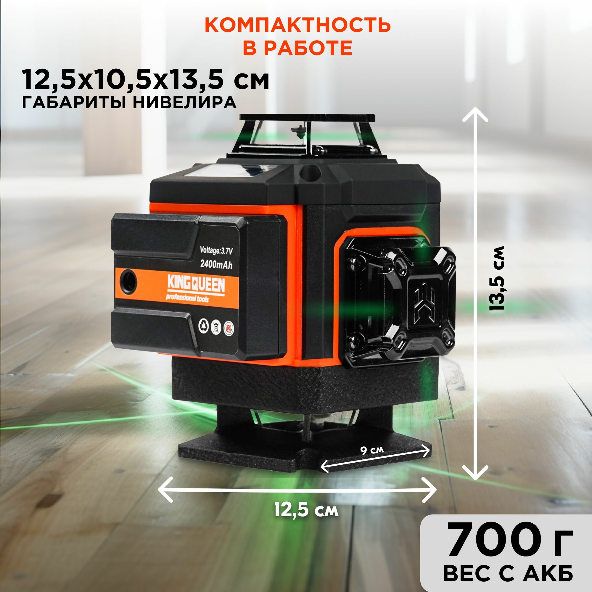 Лазерный уровень 4d нивелир 360, 16 линий зеленый луч, KINGQUEEN информация: