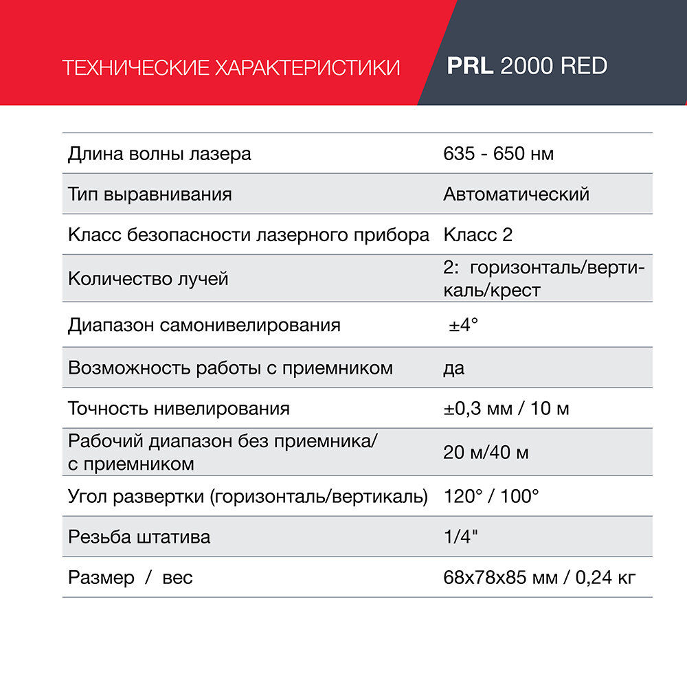 Лазерный уровень с красным лучом, Fubag PRL 2000 Red информация: