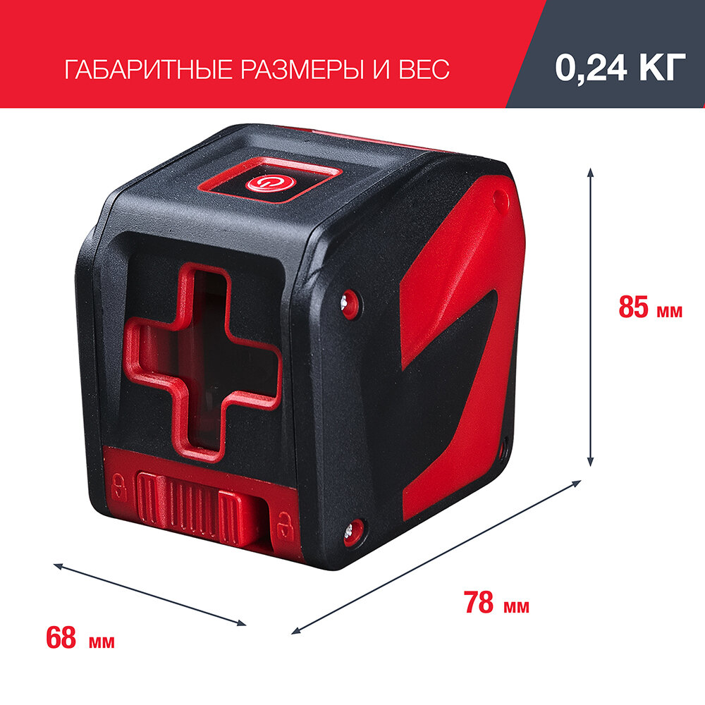 Лазерный уровень Level Pro 3, 150г, 2 луча, точность 1,4мм/м, красный луч
