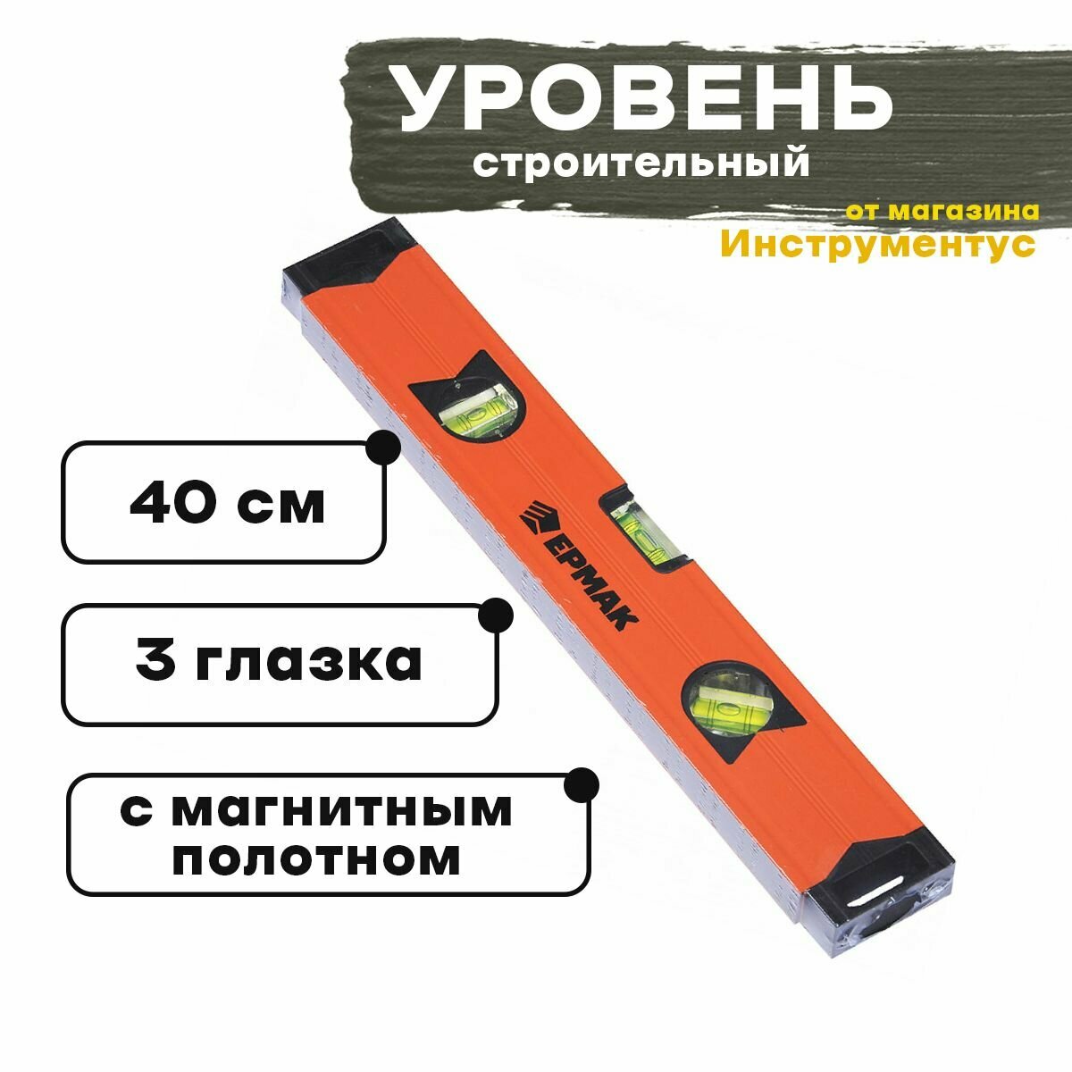 10 цен на Уровень 400мм с фронтальным глазком, алюминиевый, магнитный, 3 глазка