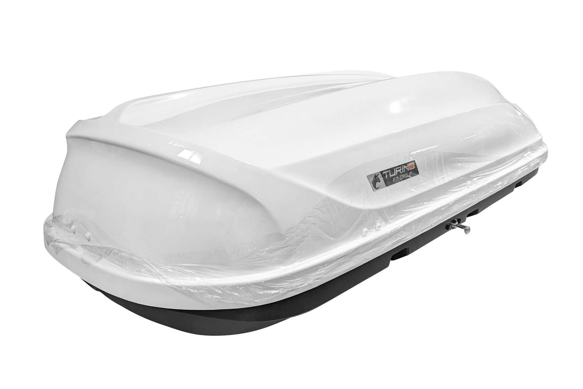 Бокс-багажник (Автобокс) на крышу Аэродинамический "Turino Medium-LUX DUO" 460 л двухсторонний, белый глянцевый.