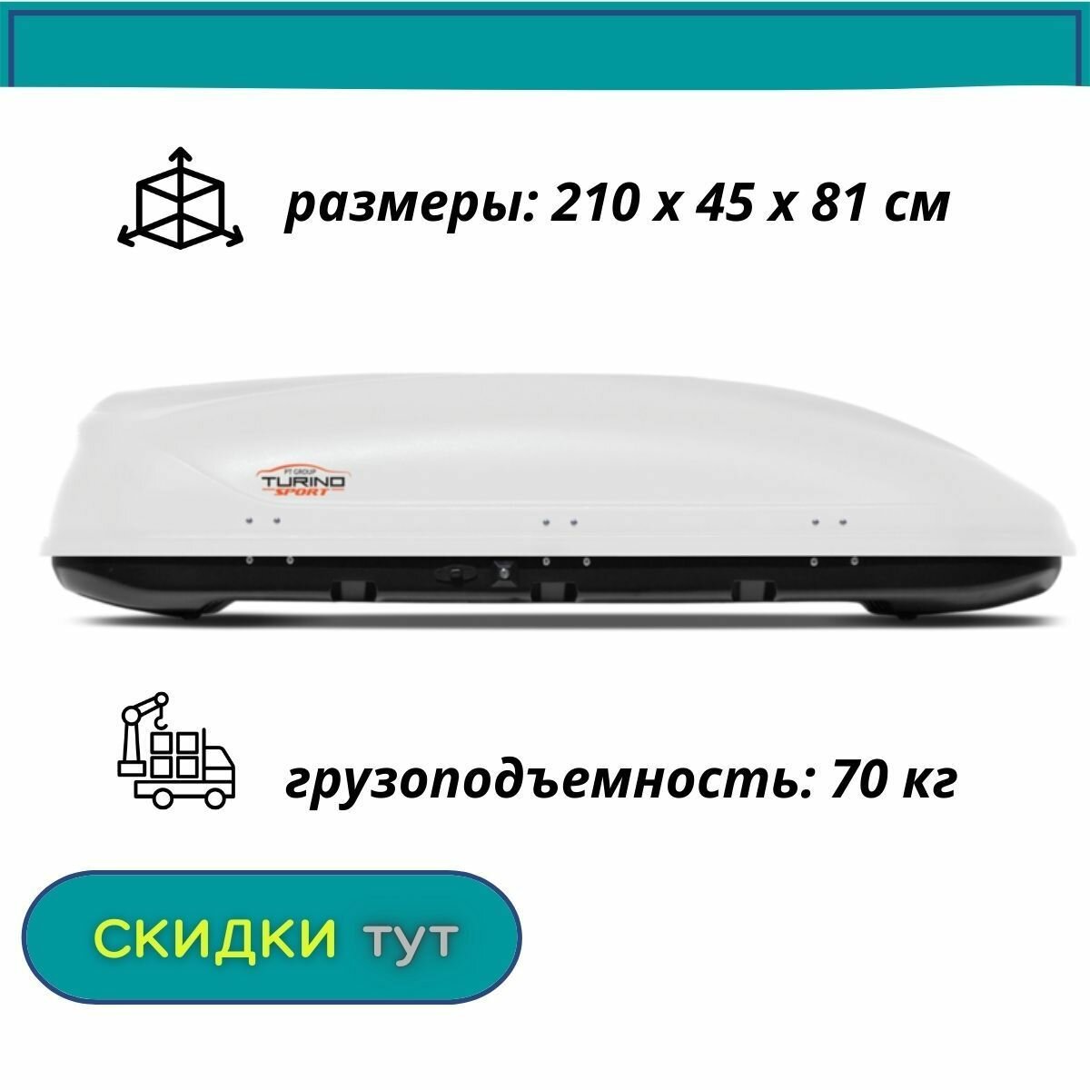Автобокс на крышу "Turino Sport"/PT GROUP/ одностороннее открывание, аэродинамический, 510 литров, белый информация: