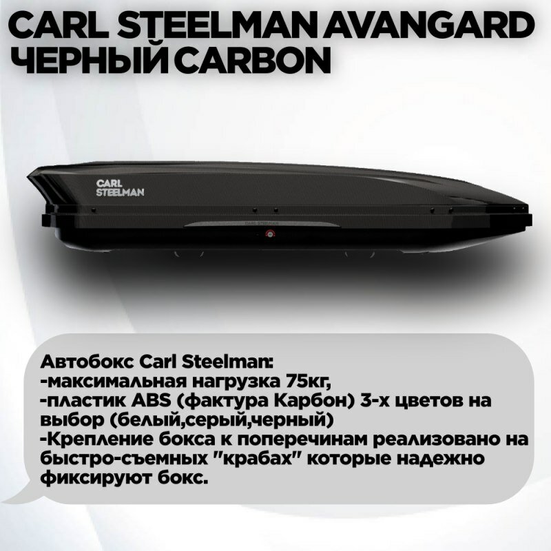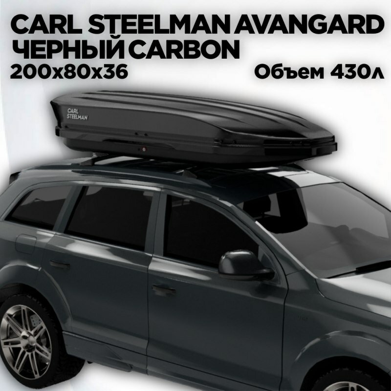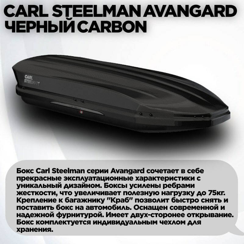 Багажный бокс на крышу Carl Steelman SPORT 1950*860*380 черный "карбон" с двухсторонним открытием + еврокрепление "краб"(об.450л)