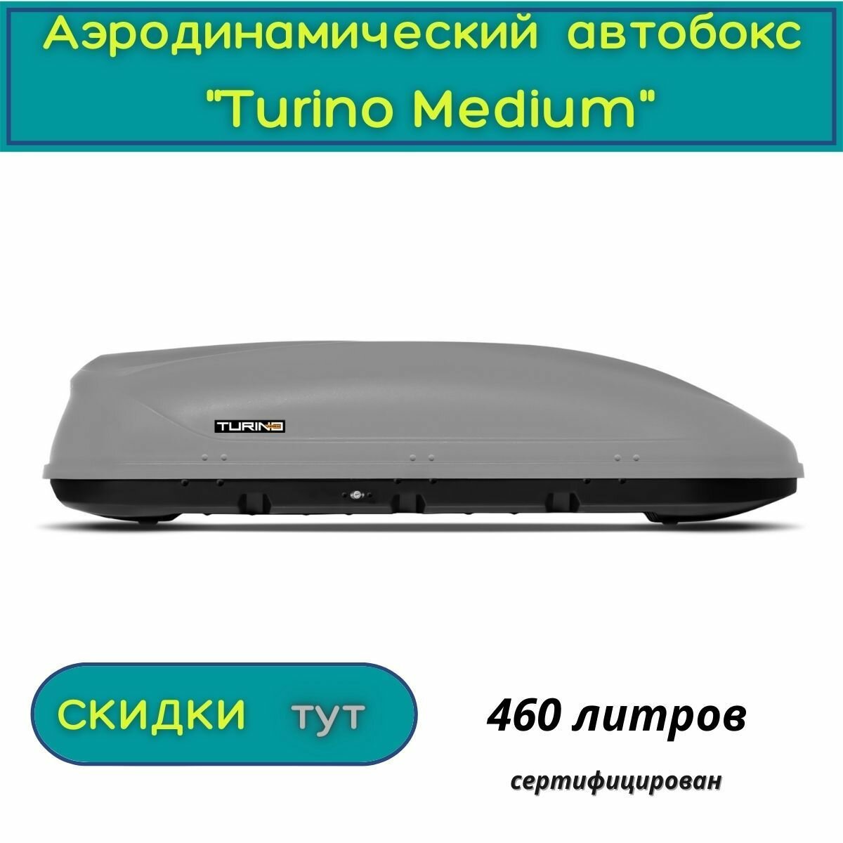 Автобокс на крышу "Turino Medium"/PT GROUP/ одностороннее открывание, аэродинамический , 460 литров, серый информация:
