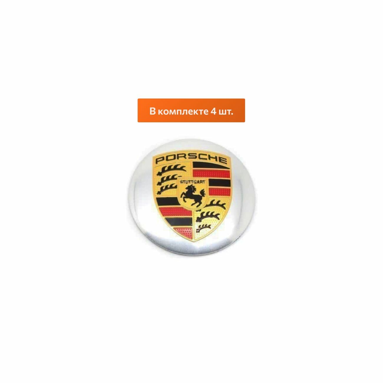Отзывы на Комплект: наклейка универсальная Porsche серебро с золотым гербом 56 мм 4 шт.