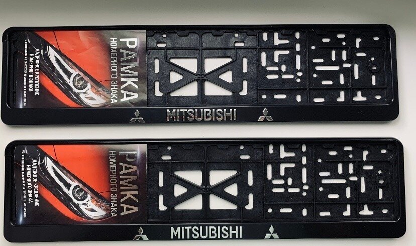 Рамка под номерной знак для автомобиля Митсубиси (Mitsubishi) 2 шт. черная информация: