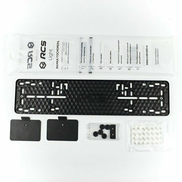 | Комплектация | Рамка с установленными магнитами 1шт, Гайка(нерж. сталь) 2шт, Винт для крепления номера (нерж. сталь) 2шт, Заглушка на гайки 2шт, Пластины для крепления номерных знаков 2шт, Антивибрационная подкладка 6шт. |