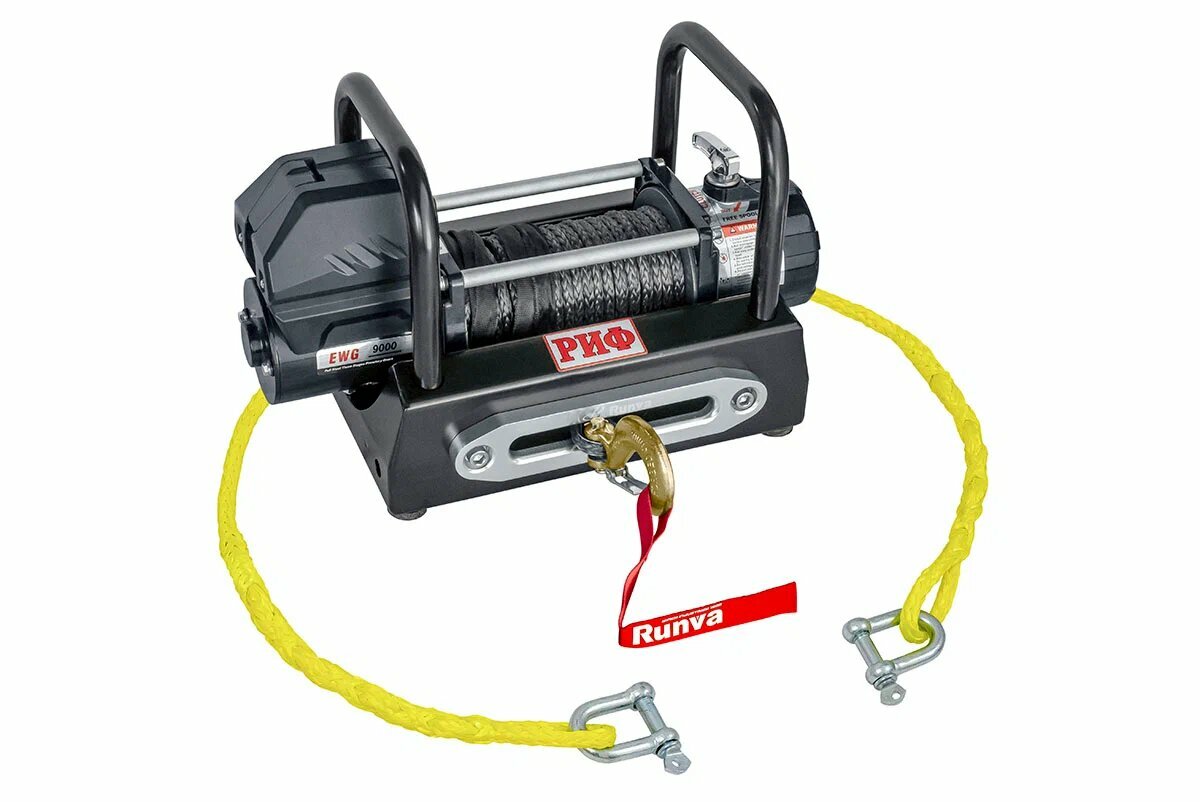 10 цен на Лебёдка переносная РИФ 9000USR c площадкой и проводами (синтетический трос)