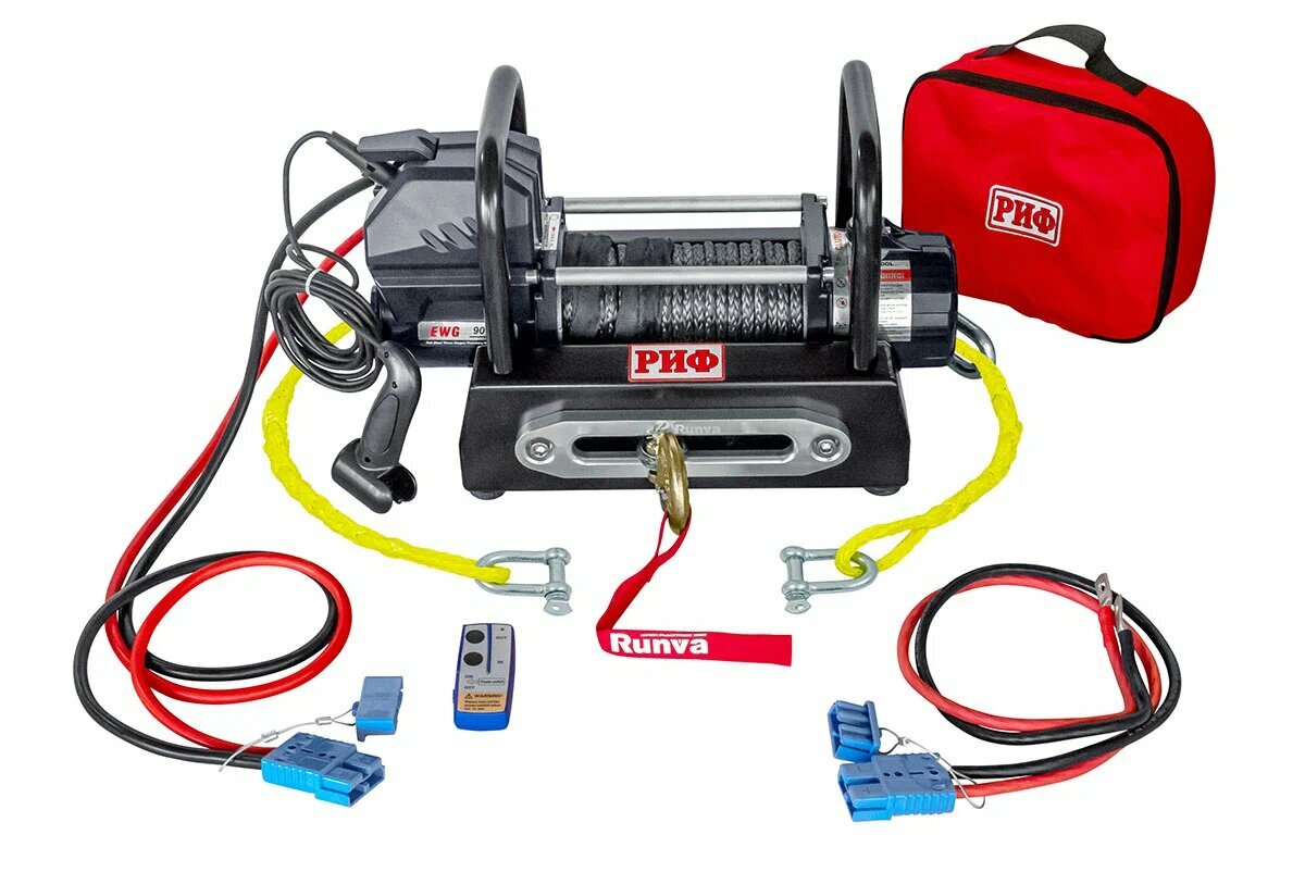 Лебёдка переносная РИФ 9000USR c площадкой и проводами (синтетический трос) информация: