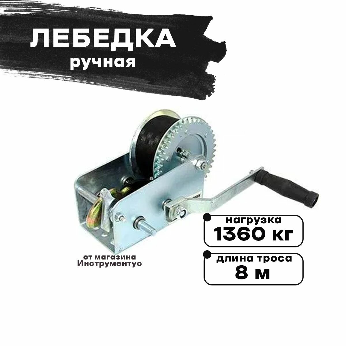 Лебедка ручная TRT 1301C металлический трос, 1350кг, длина троса 10м