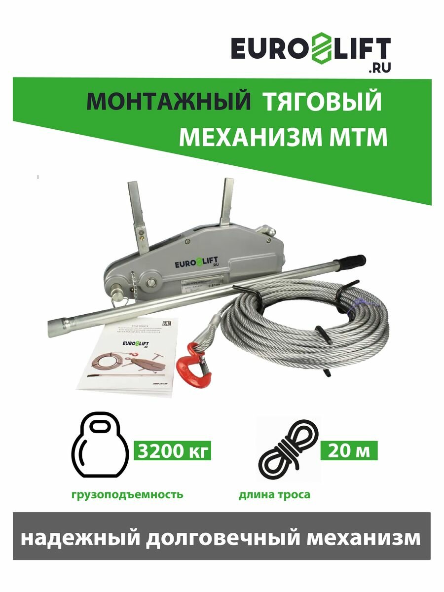 МТМ лебедка ручная рычажная Euro-Lift GP-3,2 с тросом 20 метров информация: