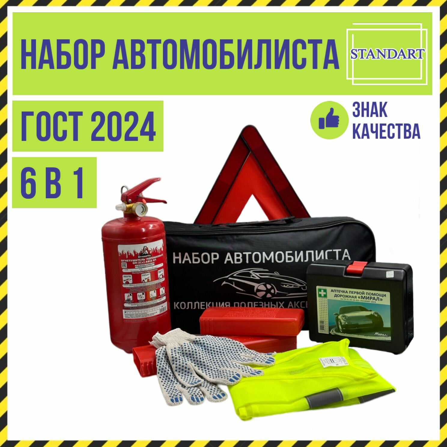 Набор автомобилиста стандарт, все для ТО, ГОСТ, 6 предметов информация: