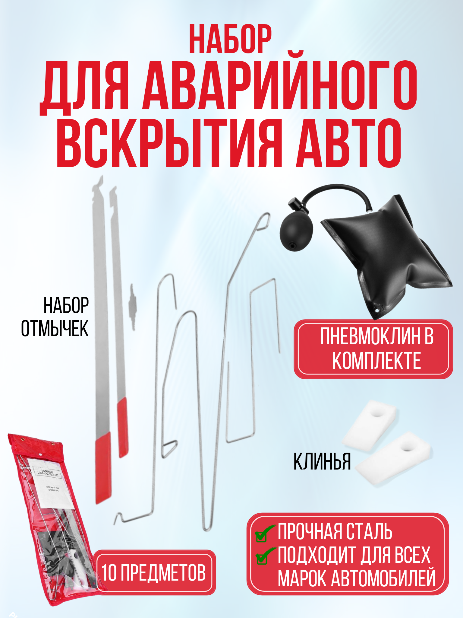 10 цен на Набор отмычек для автомобилиста аварийное вскрытие пневмоподушка