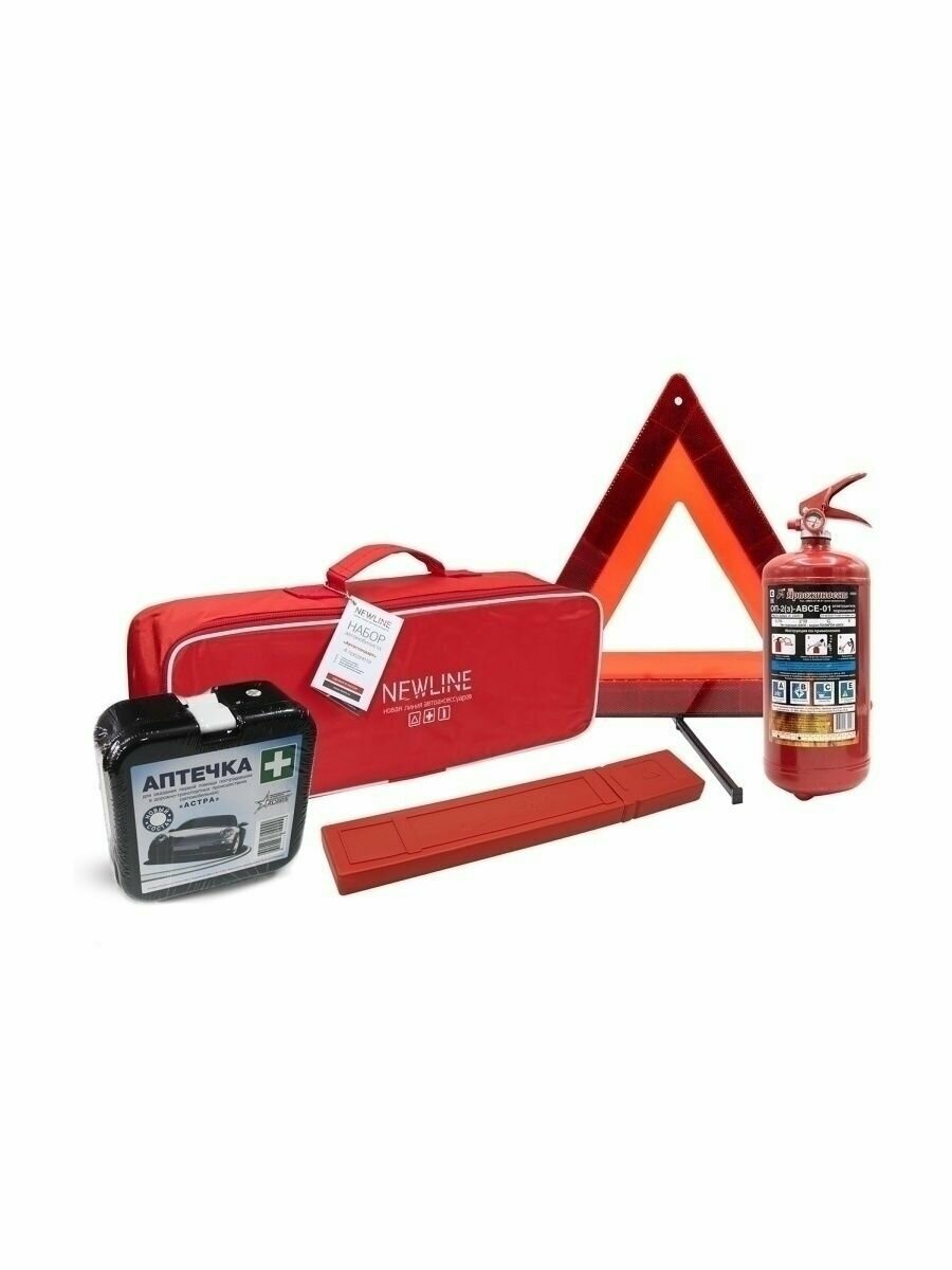Аварийный набор автомобилиста ньюлайн "ТехОсмотр ГОСТ" с огнетушителем, аптечкой и аварийным знаком, для ТО