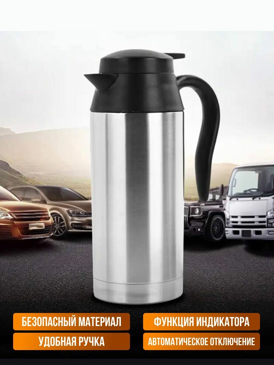 Автомобильный электрический чайник Mypads подогреваемый от прикуривателя для воды из нержавеющей стали c LED-дисплеем 1000 мл 24V серебристый