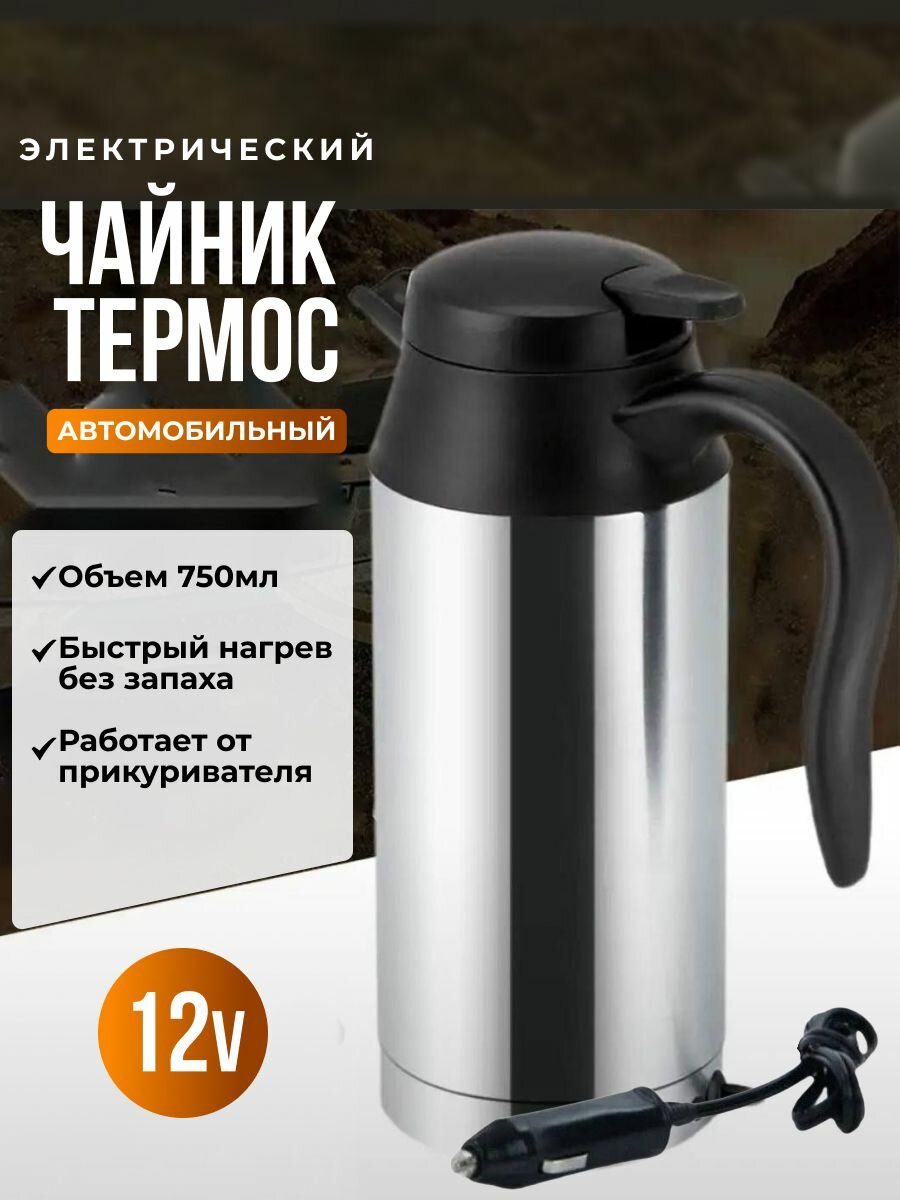 750мл 12V Автомобильный нержавеющий чайник с подогревом от прикуривателя