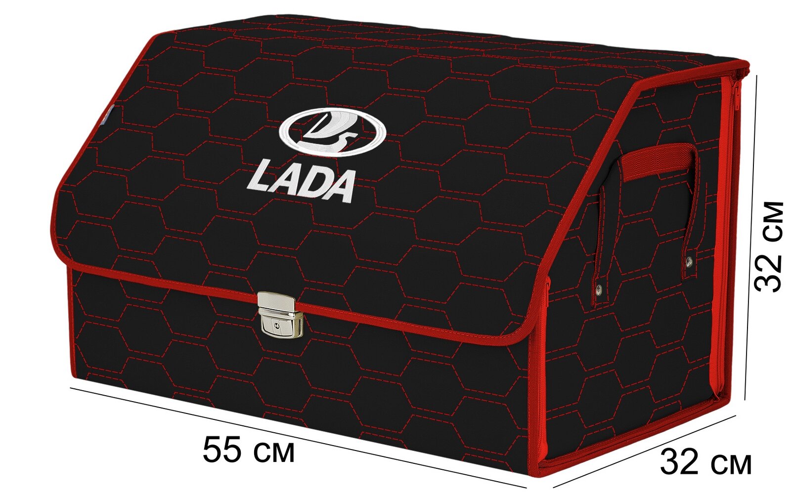 Органайзер-саквояж в багажник "Союз Премиум" (размер XL). Цвет: черный с красной прострочкой Соты и вышивкой LADA (лада). информация: