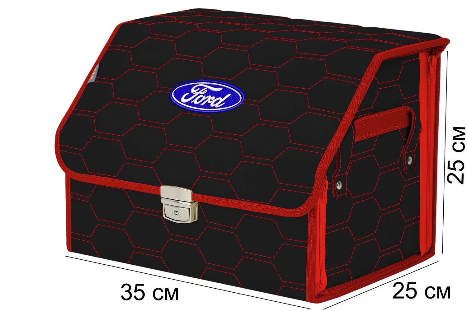Органайзер-саквояж в багажник "Союз Премиум" (размер M). Цвет: черный с красной прострочкой Соты и вышивкой Ford (Форд). информация:
