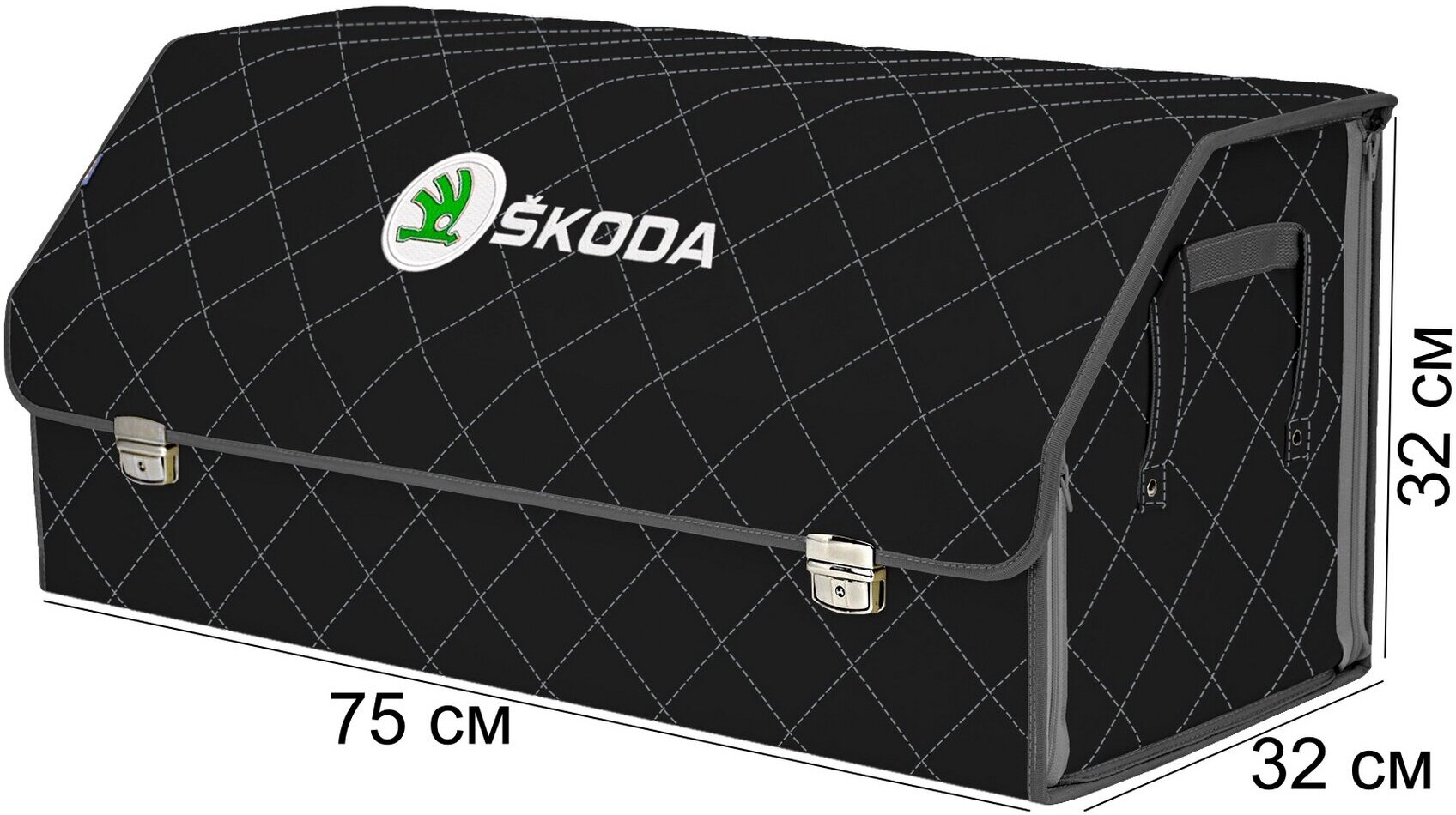 Органайзер-саквояж в багажник "Союз Премиум" (размер XXL). Цвет: черный с серой прострочкой Ромб и вышивкой Skoda (Шкода). информация:
