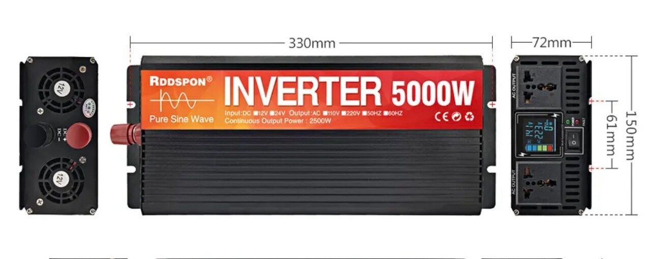 Отзывы на Автомобильный преобразователь напряжения инвертор 5000 Вт 12В-220В RDDSPON Power inverter Чистый синус. Чистая, немодифицированная синусоида