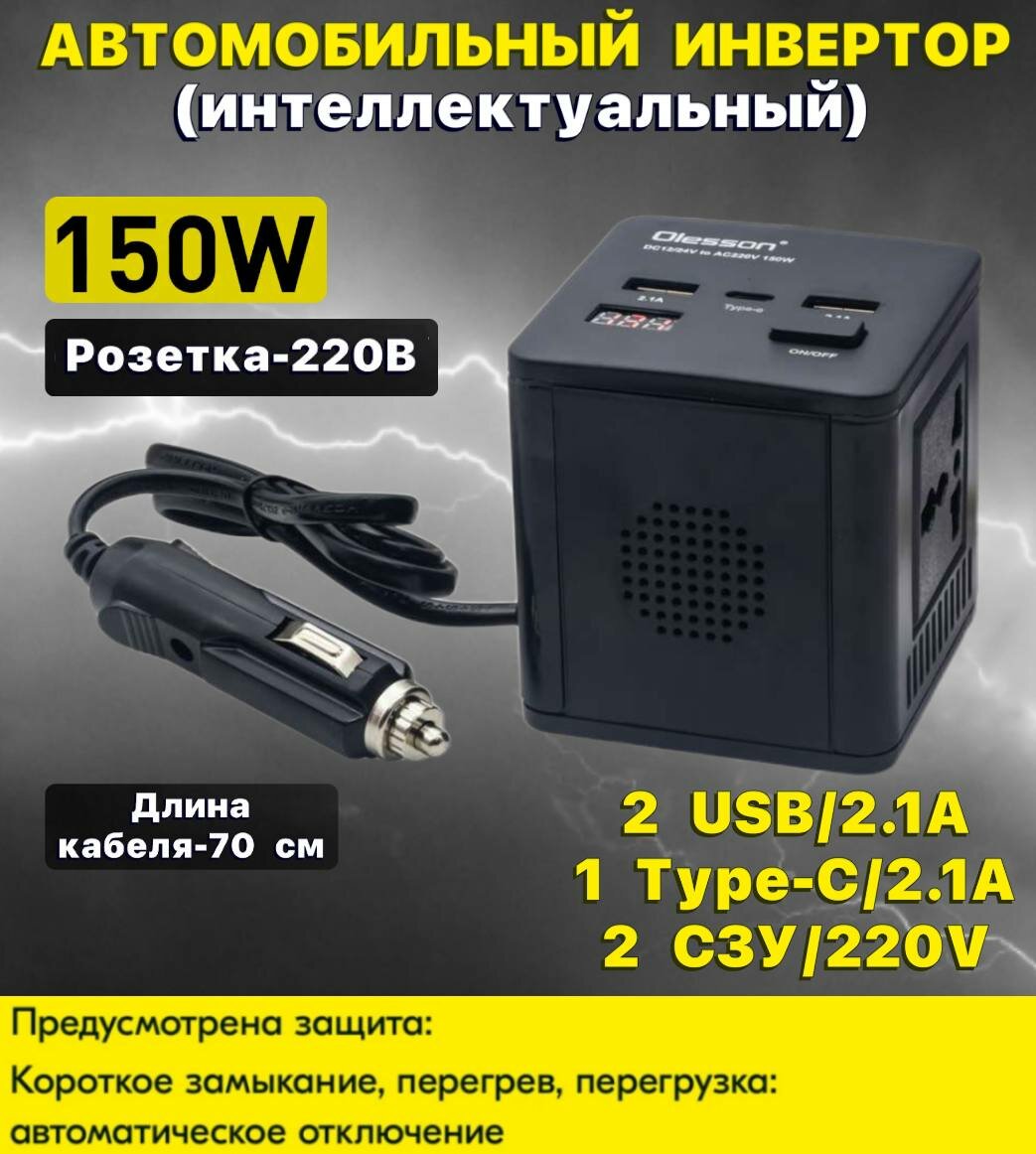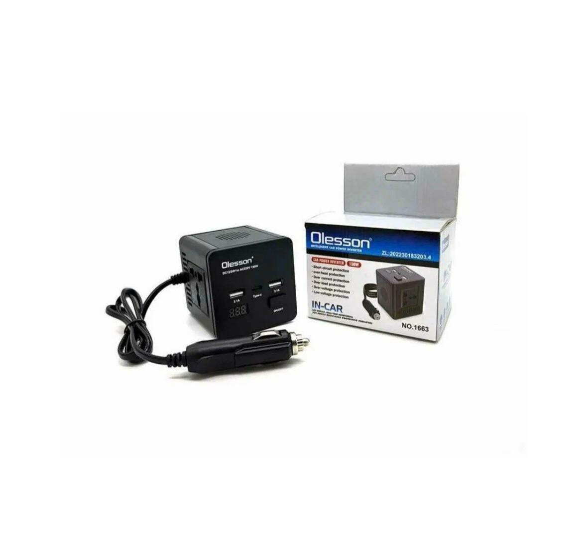 Автомобильный инвертор (интеллектуальный) Olesson 1663 (150W) ST-OL1663 чёрный информация: