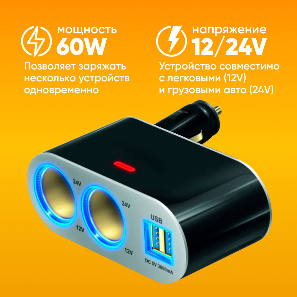 Разветвитель для автомобильного прикуривателя, 12-24 В, B Type