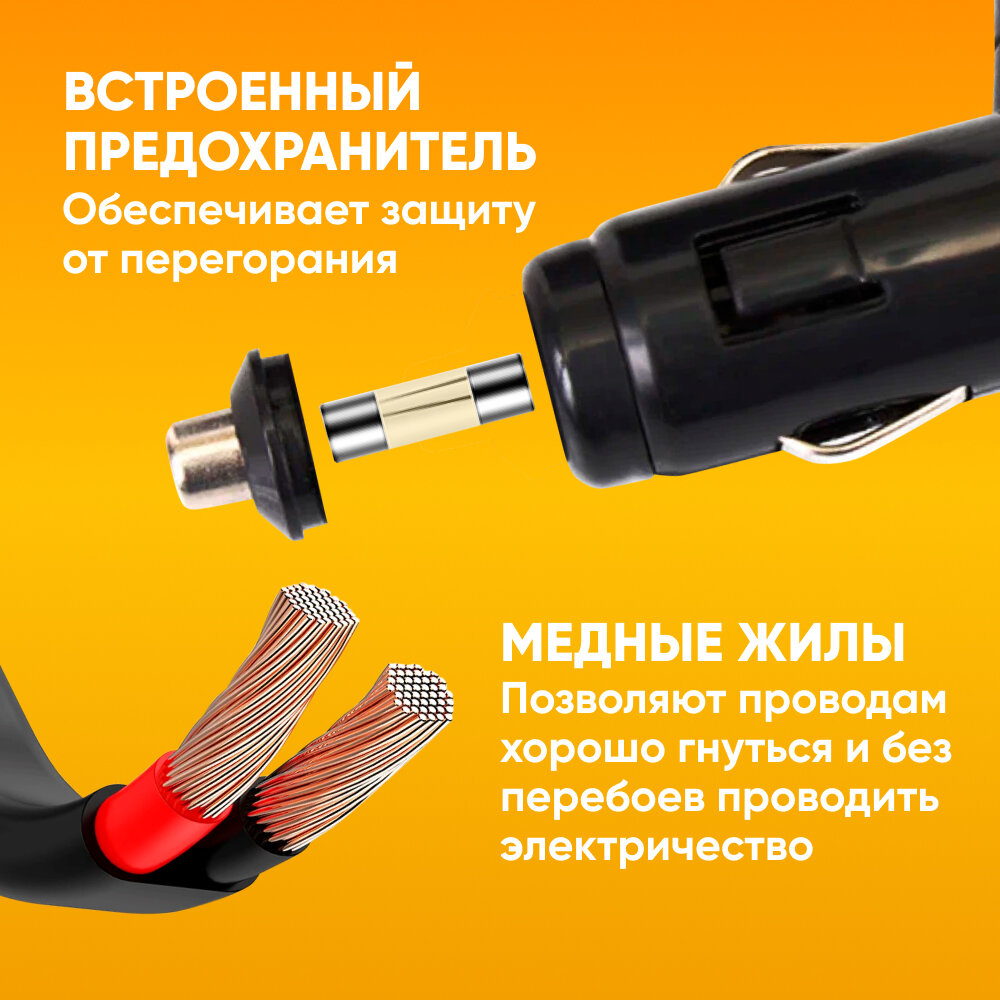 Штекер автоприкуривателя Premier PR 3-417 разветвитель на 2 гнезда 12В витой шнур 1.5м