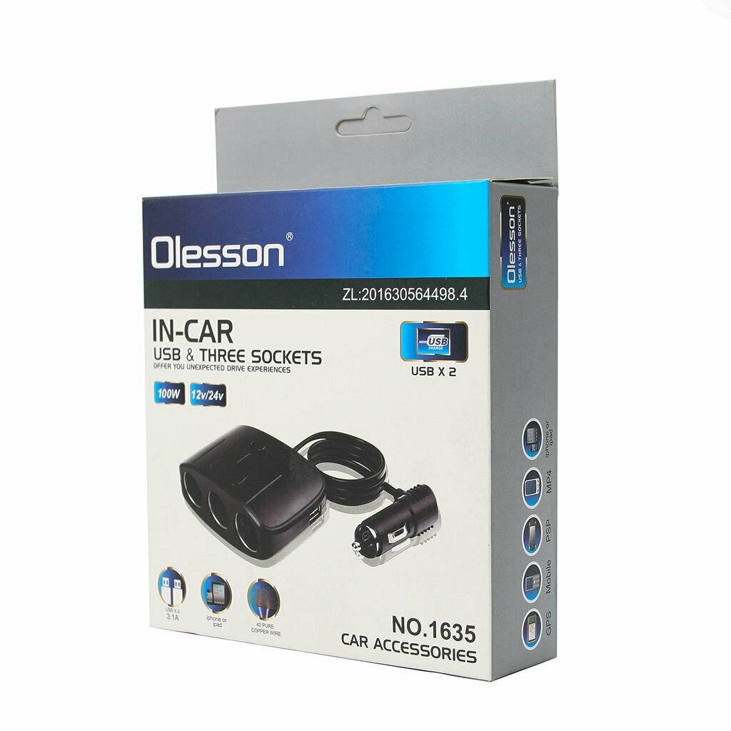 Разветвитель прикуривателя 2USB 3 разъема 12-24V (NO 1635) информация: