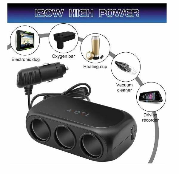 Отзывы на Разветвитель прикуривателя, 3 гнезда, 1 USB 0.5 А, 60 Вт, 12/24 В, провод 40 см, 1 шт.